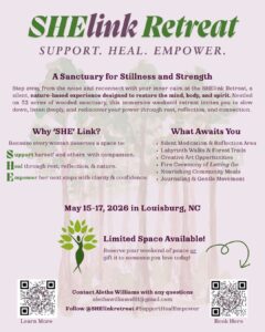 We are so excited to announce the upcoming SheLink Women’s Retreat happening this May, a sacred space intentionally created for rest, renewal, connection, and personal growth.